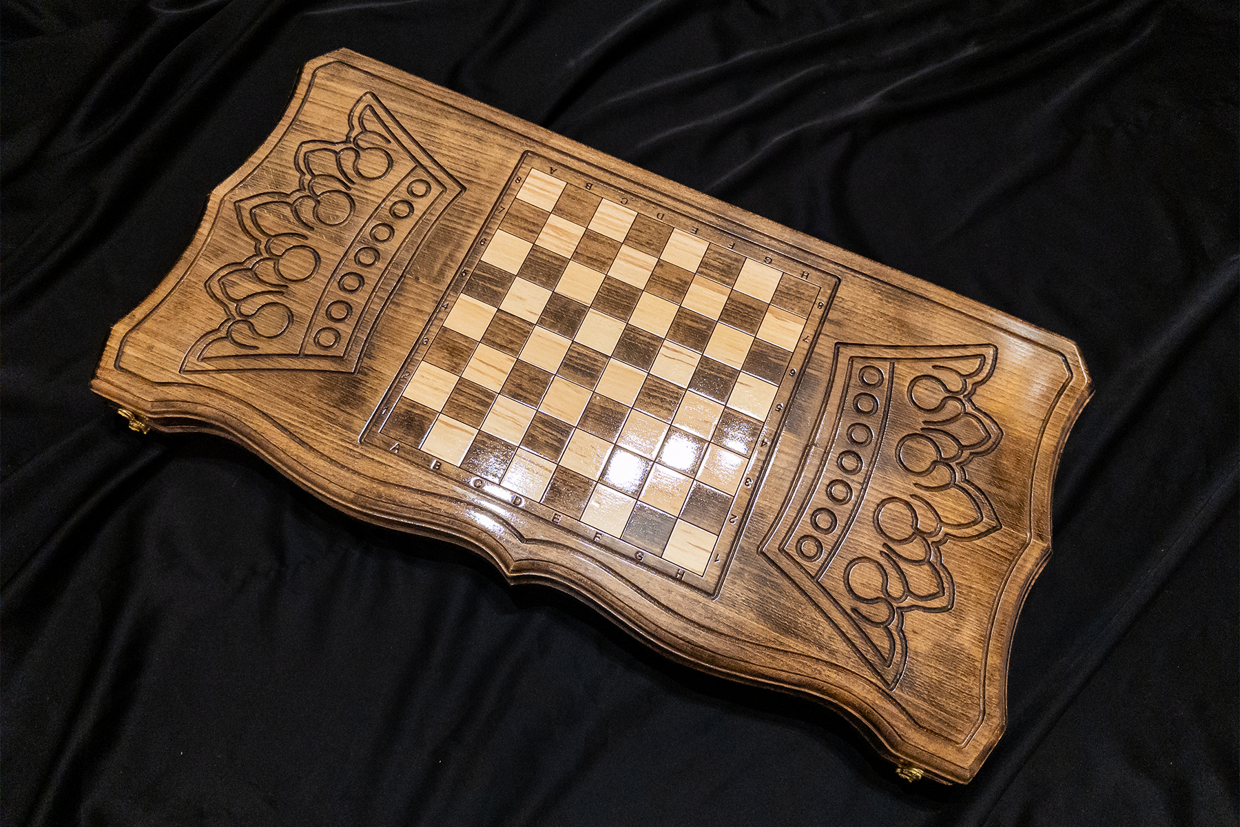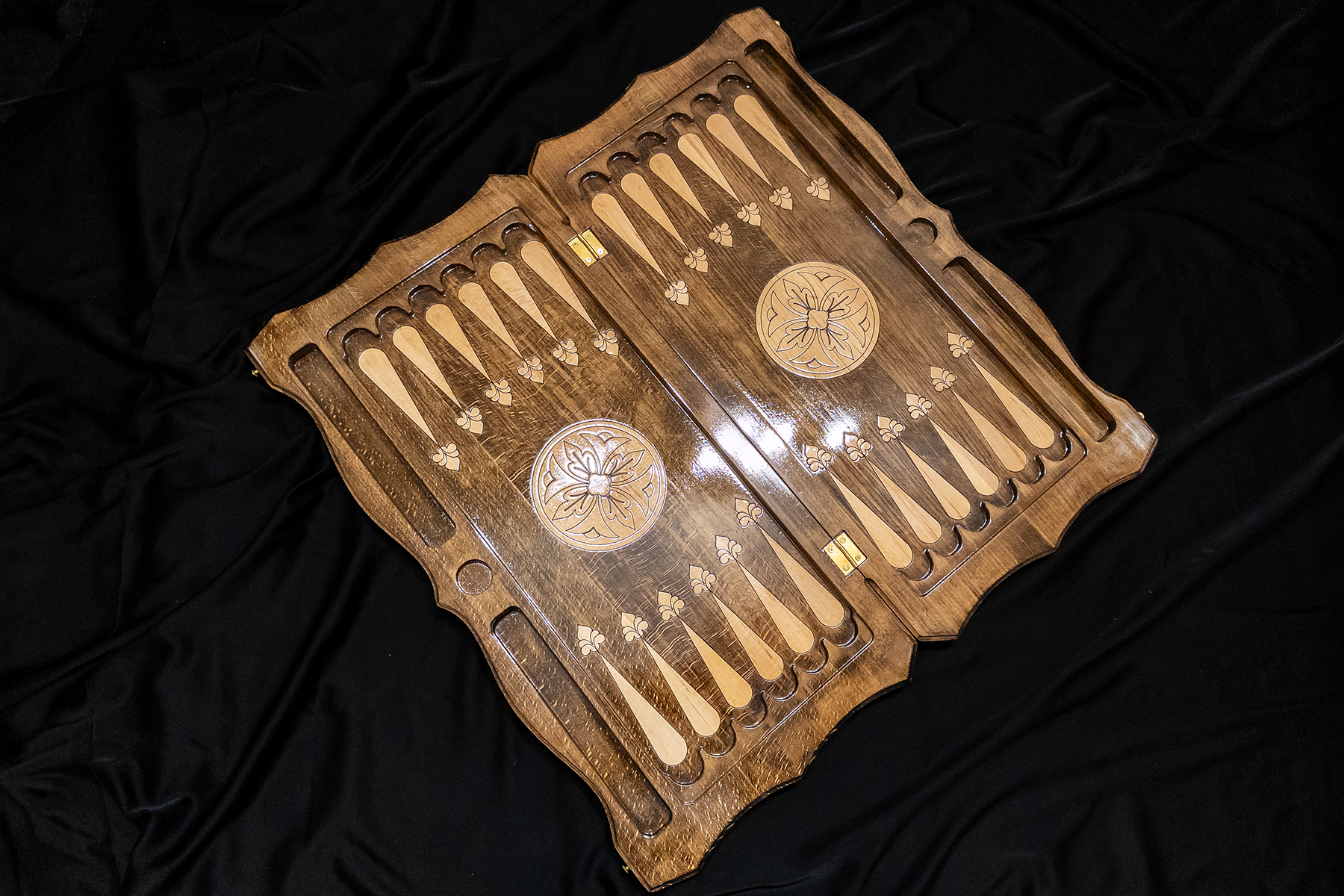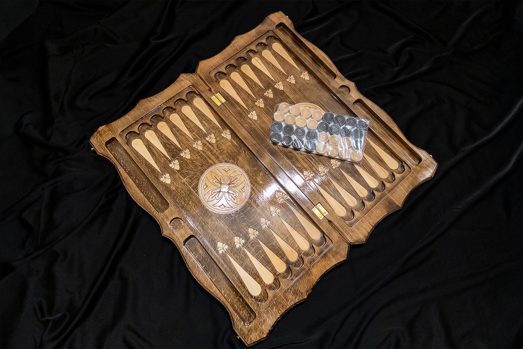 Eleganța și rafinament în joc de table lucrat manual din lemn masiv. Fiecare piesă este atent sculptată și finisată pentru a crea o decorațiune deosebită pentru orice spațiu. Cu linii fluide și detalii meticulos realizate, acest joc de table devine o piesă centrală în orice încăpere, adăugând un aer de sofisticare și stil. Este mai mult decât un simplu joc - este o operă de artă funcțională care îmbină tradiția și eleganța într-un mod remarcabil.
